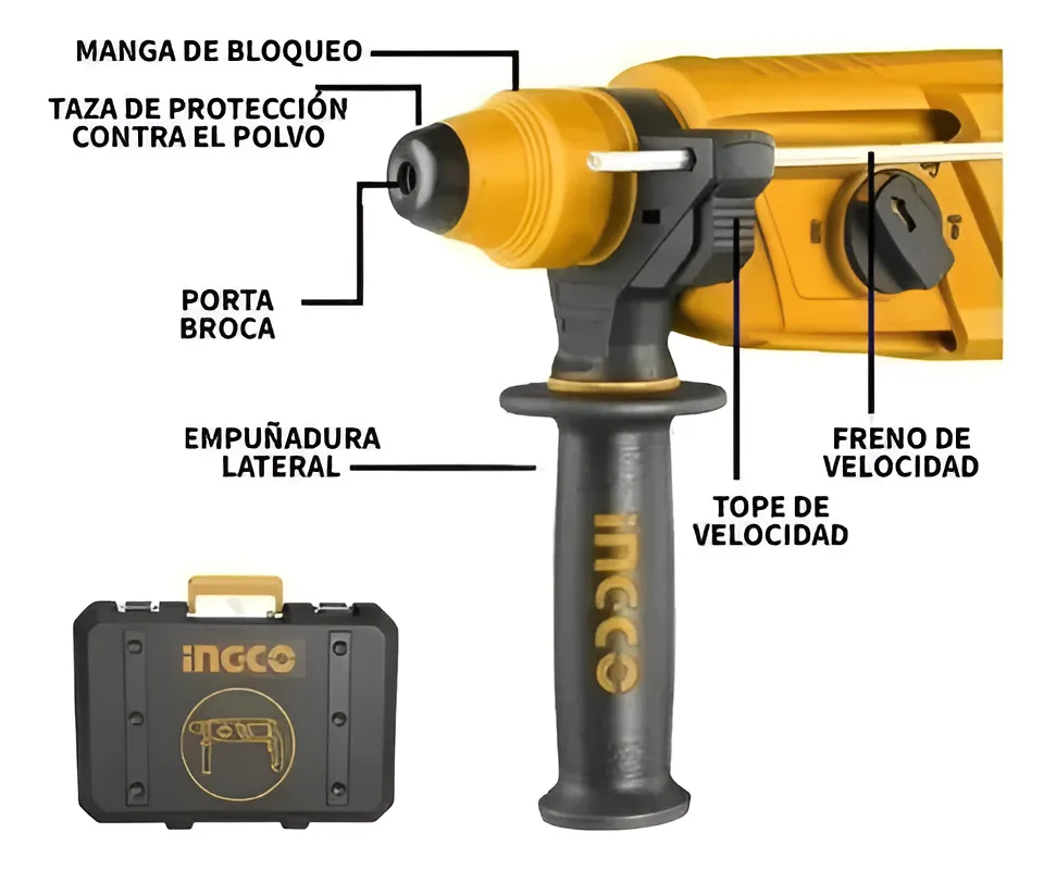 Rotomartillo SDS Plus 800W 2,5J RGH9028-4 INGCO