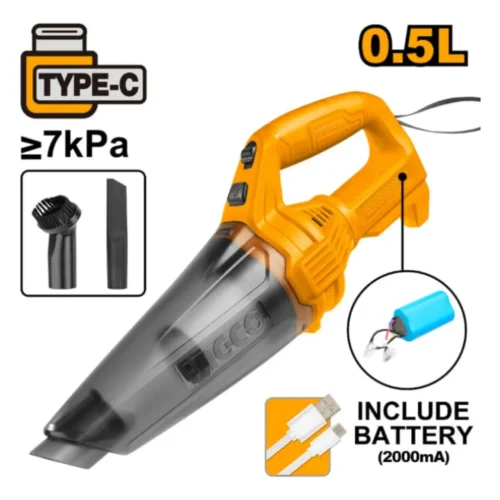 Aspiradora Inalámbrica 0,5Lts – Carga USB Tipo C CVLI2026 INGCO