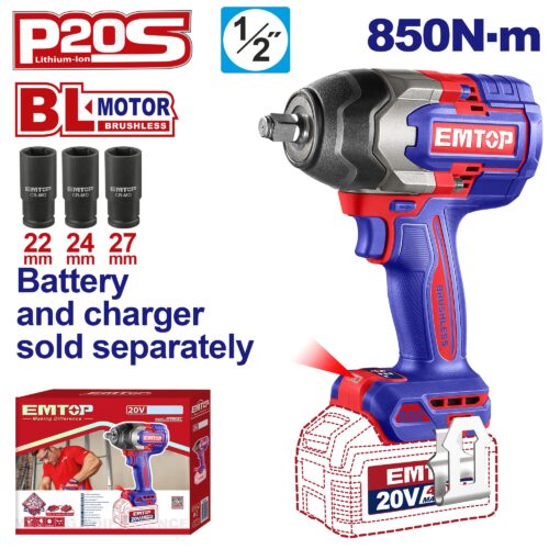 Llave De Impacto 1/2″ 850Nm Brushless 20V ECIWL2085 EMTOP