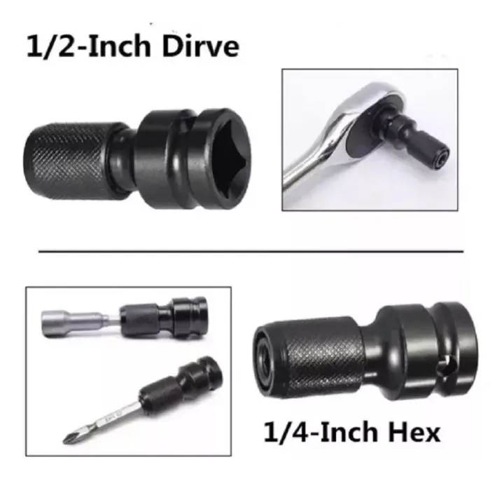 - Para Convertir Cualquier Tipo De Llave Con Cuadrado 1/2″ A Adaptador De Puntas De 1/4″ Hexagonal