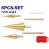 ¡Te lo enviamos a tu hogar!- Juego EMTOP ESDL2061 con 3 mechas escalonadas y 3 mechas laterales HSS 4341, ideal para perforaciones limpias y precisas en metal, plástico y otros materiales.