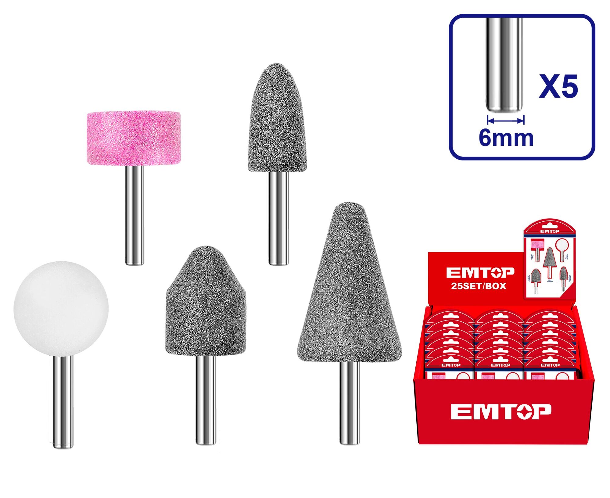 ¡Te lo enviamos a tu hogar!- Juego EMTOP EAKB0502 con 5 puntas montadas de vástago 6 mm, ideales para desbaste, pulido y acabado en metal, madera y plástico.