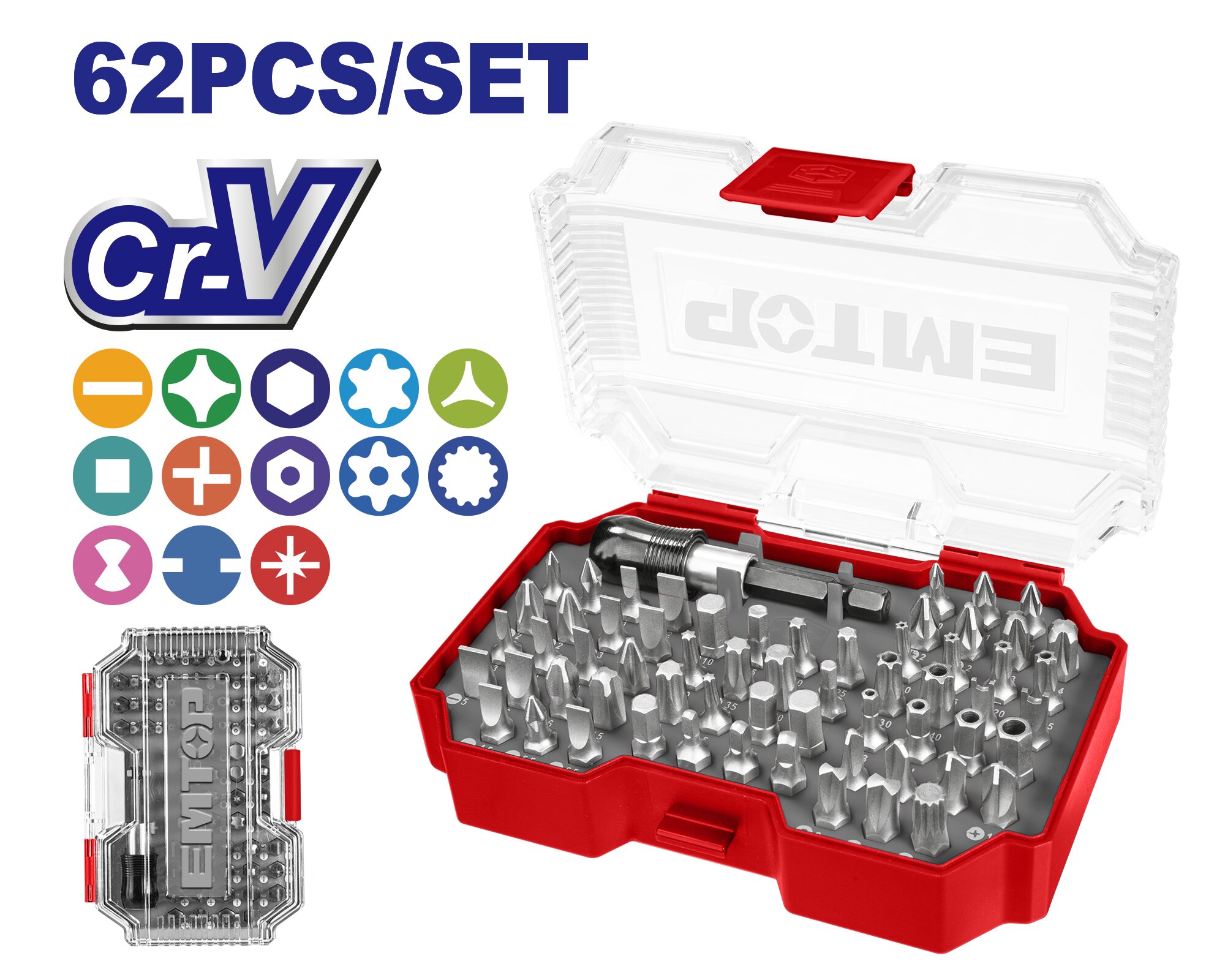 Set De Puntas 62 Piezas Cr-V EMSV3K05 EMTOP